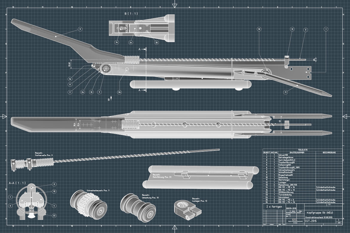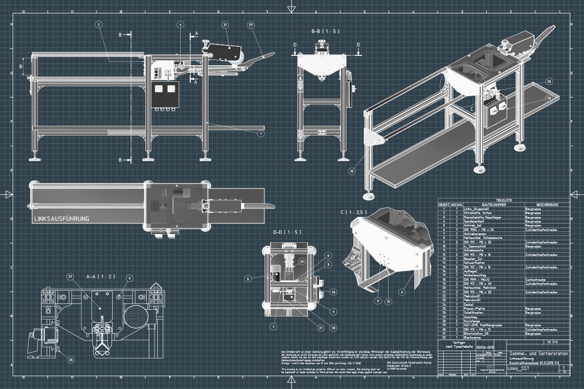 Die Sammelstation wurde zum Zweck des halbautomatischen Sortierens und Sammelns, sowie für die Vorbereitung zum Transport der Kolbenringe konzipiert und von Konstruktion Fördertechnik Kratzer entwickelt.